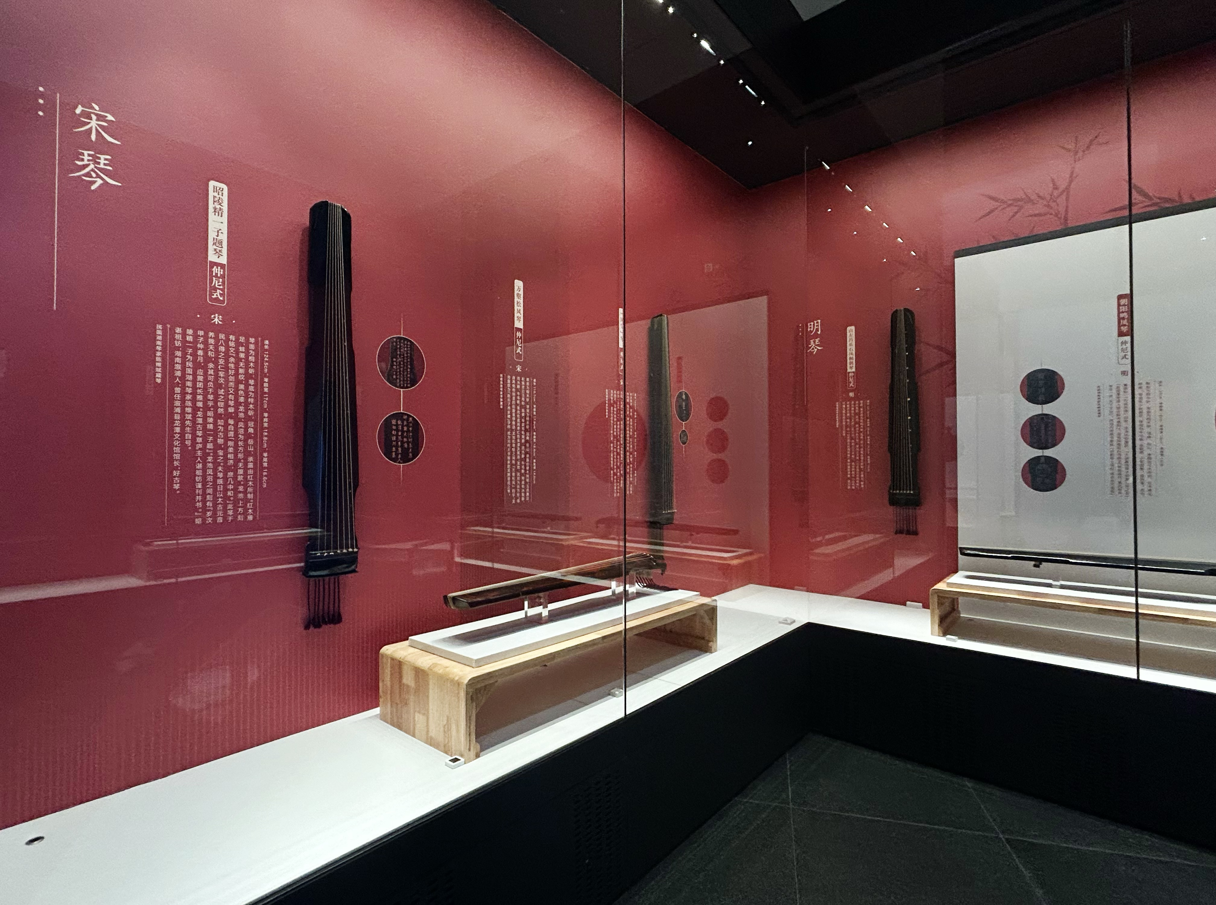 展览以中式美学表达潇湘古琴文化,共分为四个单元:“远籁”讲述湖湘古琴的文化底蕴与历史缘起;“心声”聚焦历代士人与古琴之间的共鸣情愫;“礼乐”阐明古琴在礼乐仪式中的地位与作用;“斫琴”展现古琴制作中的繁复工艺与工人匠心。让参观者在展陈叙述中遇见古琴、了解古琴、爱上古琴,从古琴中感悟中国传统文化的魅力,塑造意志、磨砺品格、传承精神。