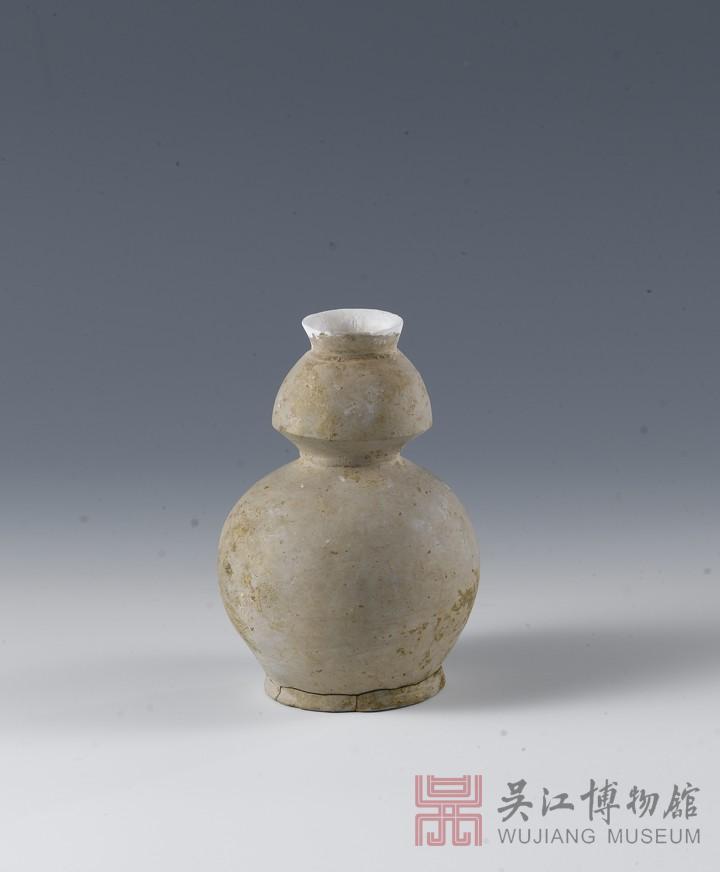 盛水器,手制轮修。方唇,喇叭形口。上腹外弧,近腰处内收;下腹外鼓,矮圈足略外撇。葫芦陶瓶,表现了远古人类祈福繁衍子孙的愿望。