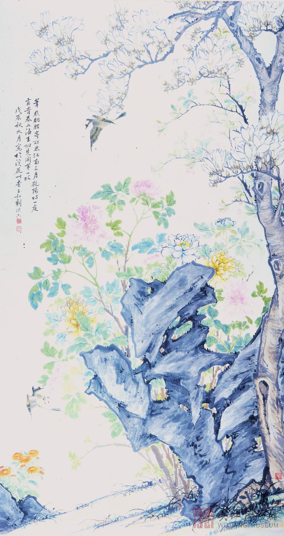 笔点胭脂寄所思,江南三月艳阳时。一庭富贵春如海,玉树先开第一枝。戊辰秋九月写于浣花草堂,子和刘德六。